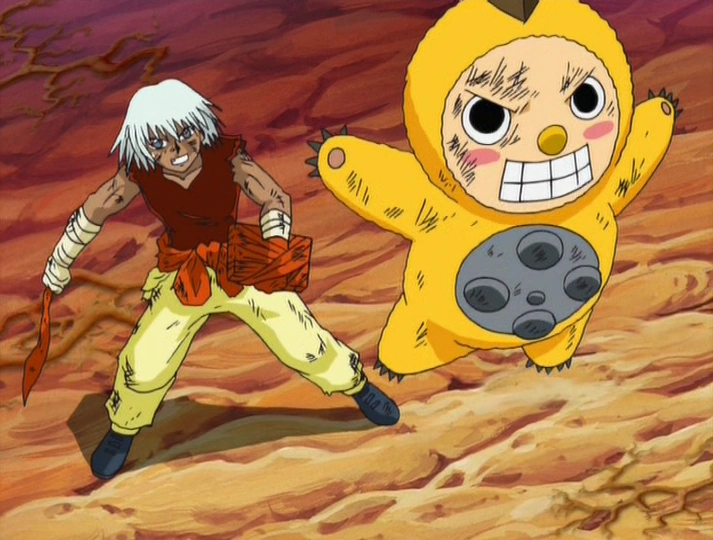 As the situation grows dire, Gide, Ted, and Li-en arrive to help. Ted charges at Jiboruou Shidon, urging Gide to raise his spell’s power further. Empowered into his Taabu Damu Naguru form, Ted smashes through the spell directly before turning on Zarchim himself. Meanwhile, Li-en aids Kiyo, Zatch, Megumi, and Tia in battling Faudo’s defense system, pointing out the creatures’ weak points. After enduring Ted’s barrage of punches, Zarchim finally restrains Ted and Gide with Orushido Sharon. Weakened and barely conscious, Zarchim and Laoxing Mo retreat from the battlefield. As they escape, Zarchim hurries back to Riou, realizing at last that he must warn him of the far greater enemy he had been sensing.