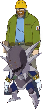 Paul Kahn, Dogmos’s human partner, has a rugged look. He is a bearded man who wears a yellow helmet with hanging straps, black sunglasses, and a green jacket over a blue shirt. His country of origin is unknown, except for the fact that it seems to be very distant from Japan.