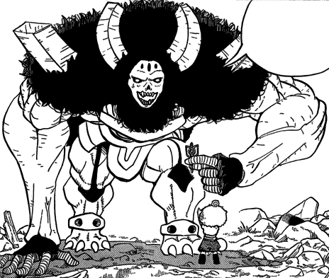 - The name “Jiza” (ジザ) may be a stylized rendering of “Giza” or “Jiza,” potentially referencing ancient or mythological connotations of massive or godlike beings, fitting his imposing stature.
