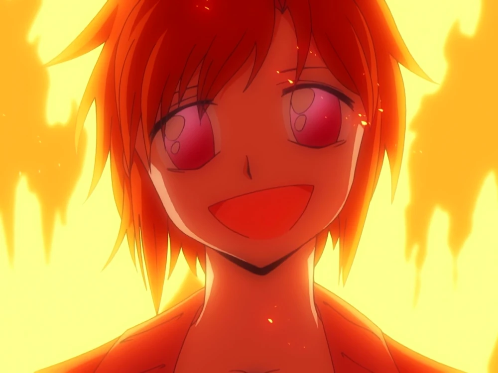 In the car, Sherry is excited to surprise Koko—but when they reach Koko’s hometown, the entire town is engulfed in flames and Koko is nowhere to be found. Worried, Sherry runs into the town despite the fire. Deep inside, she spots a familiar figure and calls out. Koko turns, smiling, and says she caused the destruction. Holding a glowing spell book, Koko casts the first spell, Radomu. The demon beside her, Zofis, aims and destroys a building behind Sherry. Koko says the power is amazing, and with it she’ll get back at everyone who wronged her.