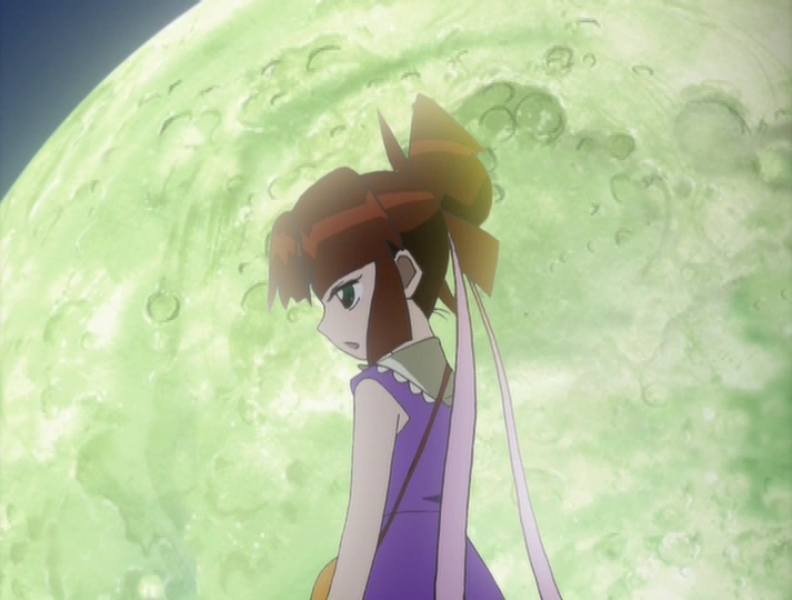 Afterward, Zatch remembers he needs to find Hana and Ponygon, which makes Kaguya suddenly upset. When he mentions the strange bodyguards, she explains her story, tying it to the folklore of Princess Kaguya: emissaries of the moon come to take her back during the full moon in August. She cries that she doesn’t want to return, but the emissaries soon find her. Begging Zatch for help, the two run and, when surrounded, Zatch carries her on his shoulders and dashes across the festival stalls to safety on a rooftop.