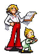 Kanchomé is a bizarre and wimpy mamodo with the ability to change shape and size. The guardian of his book is Italian superstar Parco Folgore, an actor and singer who utilizes his impressive dancing skills to move and combat in ways that are difficult to predict. These characters' unusual attacks can only be effectively utilized by skilled players. | Unlocked by beating Kanchomé & Folgore in Story mode. |