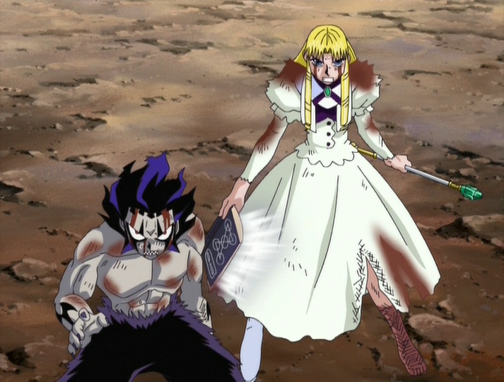 Suddenly, Laila and Albert appear and attempt to hit Zofis with a surprise attack. When he tries to attack her with a spell, he sees that it is suddenly blocked by Tia and Megumi who cast Ma Seshirudo. Wonrei and Li-en also join in with a surprise attack by using Garu Redoruku. Zofis evades this, but turns around to see Kanchome using Dikaporuku to intimidate him. This does not last long as Zofis would quickly notice where both Kanchome and Folgore were hiding. Ponygon and Sunbeam would also join in the attack by having Ponygon deflect Zofis’ spells while in his Gou Shudoruku form. While Zofis finds himself occupied with all the teams in front of him, Kiyo and Zatch launch a Zakeruga attack from behind him. While they have Zofis’ attention, Zatch and Kiyo tell him that they will be his opponents as they plan to fight him on behalf of all of those he had manipulated and harmed in his scheme to become the next king.